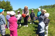 Менә бездә бүген рюкзакларга тэмлүшкәләр алып тәрбияче апалар артыннан каз бәбкәләре кебек тезелеп болын, су буйларына барып, уйнап, саф һавада рәхәтләнеп ял итеп кайттык -