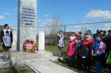 Бөек Ватан сугышында һәлак булган авылдашларыбыз искә алып һәйкәлгә венок салдык.