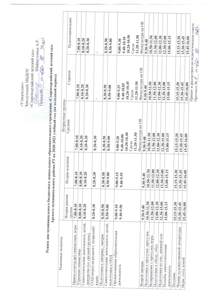 Расписание организованной образовательной деятельности на 2020-2021 учебный год