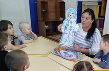 12 нче апрель -Косонавтика көне дип билгеләп утелә. Шушы уңайдан без балалар белән бик кызыклы шөгыль уздырдык." "Планетарийга сәяхәт" уены оештырдык. Кояш системасы, планеталар турында белешмәләр бирдек .Беренче косонавт Ю.Гагарин белән танышу аша илебезгә карата горурлык хисләре тәрбияләдек.