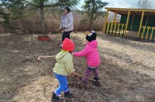 Чисталык айлыгы дәвам итә. Без буген өмәгә чыктык.Уен мәйданчыгын көзге яфраклардан чистарттык.