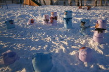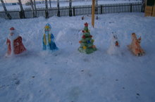 Балалар белән бергә кардан Кыш бабай ясадык. Ясаган кар сыннарын быел кардан да, целлофан пакетлардан да ясадык. Бик матур булды.