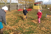 Без буген территорияне чистарттык. Коелган яфракларны тырмаладык, агачларны агарттык, чүп түктек. Безгә балалар да булыштылар.