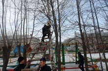 Сегодня обучающиеся школы на деревьях установили скворечники, изготовленные своими руками.