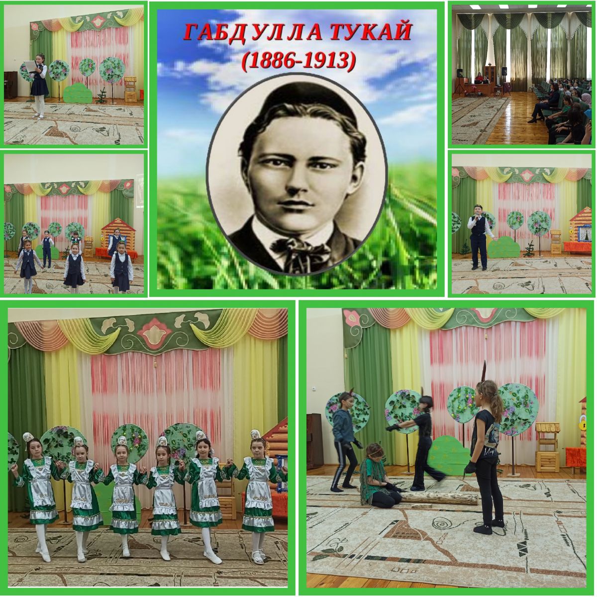 Тукай! Бу исем бик җылы булып безнең күңелләргә мәңгелеккә урнашкан. Гомер буе ул безнең йөрәк түребездә идеал булып саклана, сүнмәс йолдыз булып балкып тора. Безнең күңелләрдә туган илгә, туган халыкка, туган телгә мәхәббәт хисе әнә шулай Тукай исеме беләнбергә туа. Бүген бездә олы бәйрәм — сөекле шагыйребез Габдулла Тукайның тууына 135 ел тулуга багышланган «Бәйрәм бүген, бәйрәм бүген...» әдәби чара уздырылды. Кичә икенче сыйныф укучыларының шигъри монтажлары белән башланып китте. «Туган тел» җырына төшерелгән видоролик күрсәтелде. Укучылар Габдулла Тукайга багышлап язылган шигырьләр укыдылар. 3 А сыйныф укучысы Төхфәтуллина Зилә «Бәйрәм бүген» җырын башкарды.