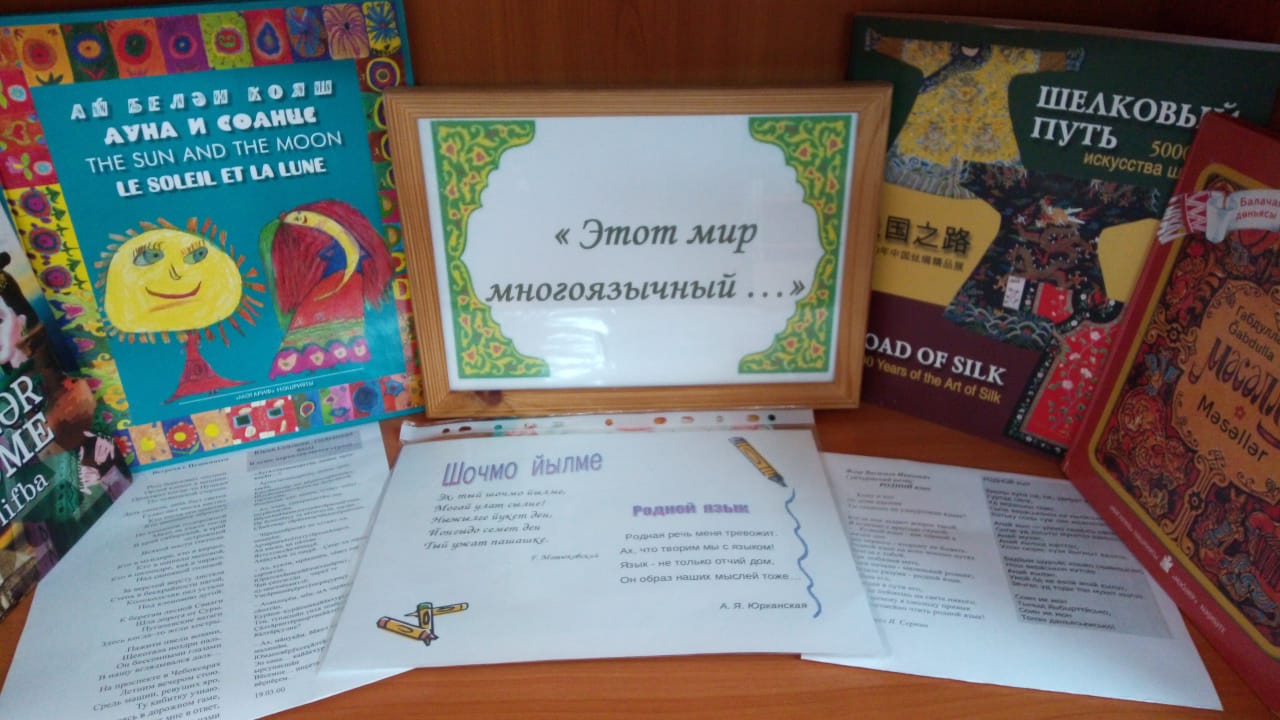Туган еллар һәм халыклар бердәмлеге елы" кысаларында мәктәбебез ктапханәсендә һәрдаим китап күргәзмәләре эшләп килә. Укучылар төрле телләрдә язылып бастырылган китаплар һәм алаврның авторлары белән таныша алдылар. -