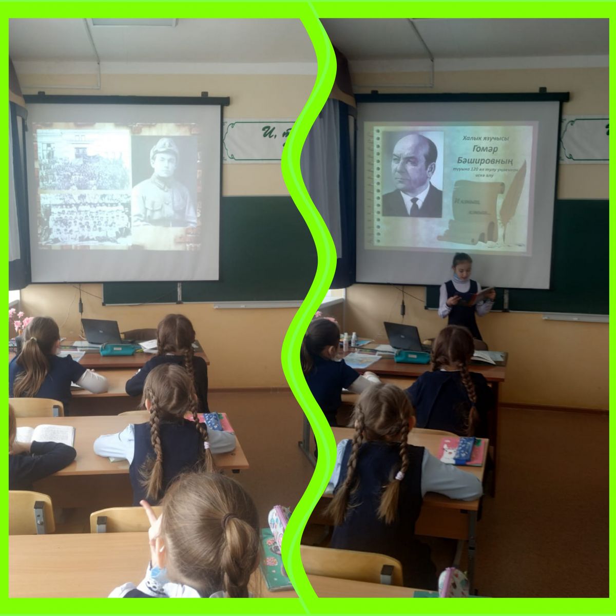 "Туган еллар һәм халыклар бердәмлеге елы" 3 нче сыйныфта якташ язучы Гомәр Бәширов иҗаты белән танышу буенча дәрес оештырылды. -