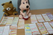 Сегодня в среднюю группу к детям пришли "лесные жители".Они научили их украшать полотенце используя нетрадиционную технику рисования -ватными палочками.