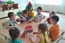 "Кояшта кунакта" 29.07.2019 Балалар бакчасына йөрүче балалар әкиятләр тыңларга бик яраталар.Әкиятне сөйләп бетергәч ,рольләргә бүленеп уйнап карау - балаларның иң яраткан шөгыле.Бүген "Кояшта кунакта" әкиятен сәхнәләштердек.