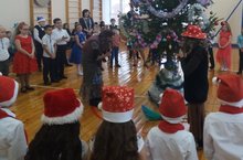 25 декабря весело и задорно в нашей школе прошли новогодние елки для 1-2 и 3-4 классов. Открыла наш утренник веселая и красивая фея. Она плавно перенесла нас в волшебную сказку. Скучающих не было. Еще бы! Ведь на праздник к ребятам пришла не одна Баба Яга, а ее друг Леший и два разбойника! Огоньки заблистали и под веселый смех детишек все закружились в веселом танце. Дед Мороз со Снегурочкой поздравляли всех с Новым годом и дарили сладости.