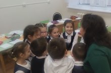 "Күңелле инглиз теле" 22.11.2017 Балалар бакчасына йөрүче балалар өчен "Күңелле инглиз теле" түгәрәге эшли. Аны Укучылар сараеннан килеп үткәрәләр.Бүген түгәрәк эше белән танышырга әти-әниләр дә килгән иде.Балаларның инглиз телендә гаилә , төсләр ,хайваннар турындагы белемнәре искә төшерелде ,ныгытылды .Түгәрәк эшен әти-әниләр бик ошатты.