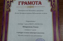 Бала китапханәдән читләшмәсә, мәктәптә дә яхшы укый, тормышта да үз урынын дөрес билгели. 5 нче Б сыйныф укучысы Шакирова Азалия Арча үзәк китапханәсендә үткәрелгән "Иң күп китап укучы бала" конкурсында 3 нче урынга лаек булды. Укучыбызга грамота һәм бүләк бирелде.