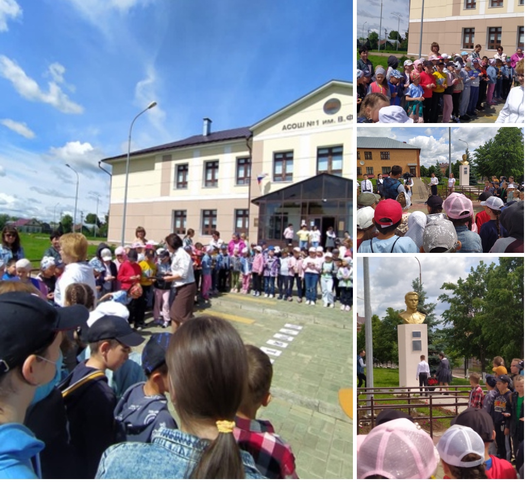 Воспитанники нашего лагеря побывали в митинге в МБОУ «АСОШ №1 им.В.Ф.Ежкова с УИОП» , посвященный памяти погибших в Годы Великой Отечественной войны и Героев Советского Союза. В ходе мероприятия дети еще раз вспомнили о трагических страницах истории Отечества, о героическом подвиге Героя Советского Союза В.Ф.Ежкова, выпускника школы, зажгли свечи в память о мужестве, долге, чести нашего народа, возложили цветы к бюсту В.Ф.Ежкова. -