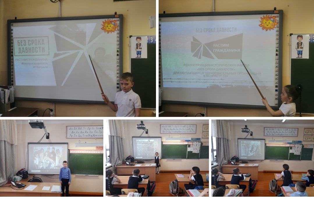 Ключевым мероприятием Дня единых действий является специально созданная командой педагогов, историков и психологов «Реконструкция исторических фактов «Без срока давности». Это формат исторического погружения, когда участники ставят себя на место исторических персонажей и пробуют совершить непростой выбор. Все ситуации основаны на реальных событиях и переносят нас то в Аджимушкайские каменоломни, то в деревню Хацунь Брянской области, то в блокадный Ленинград и т.д., где наши учащиеся школы приняли активное участие -