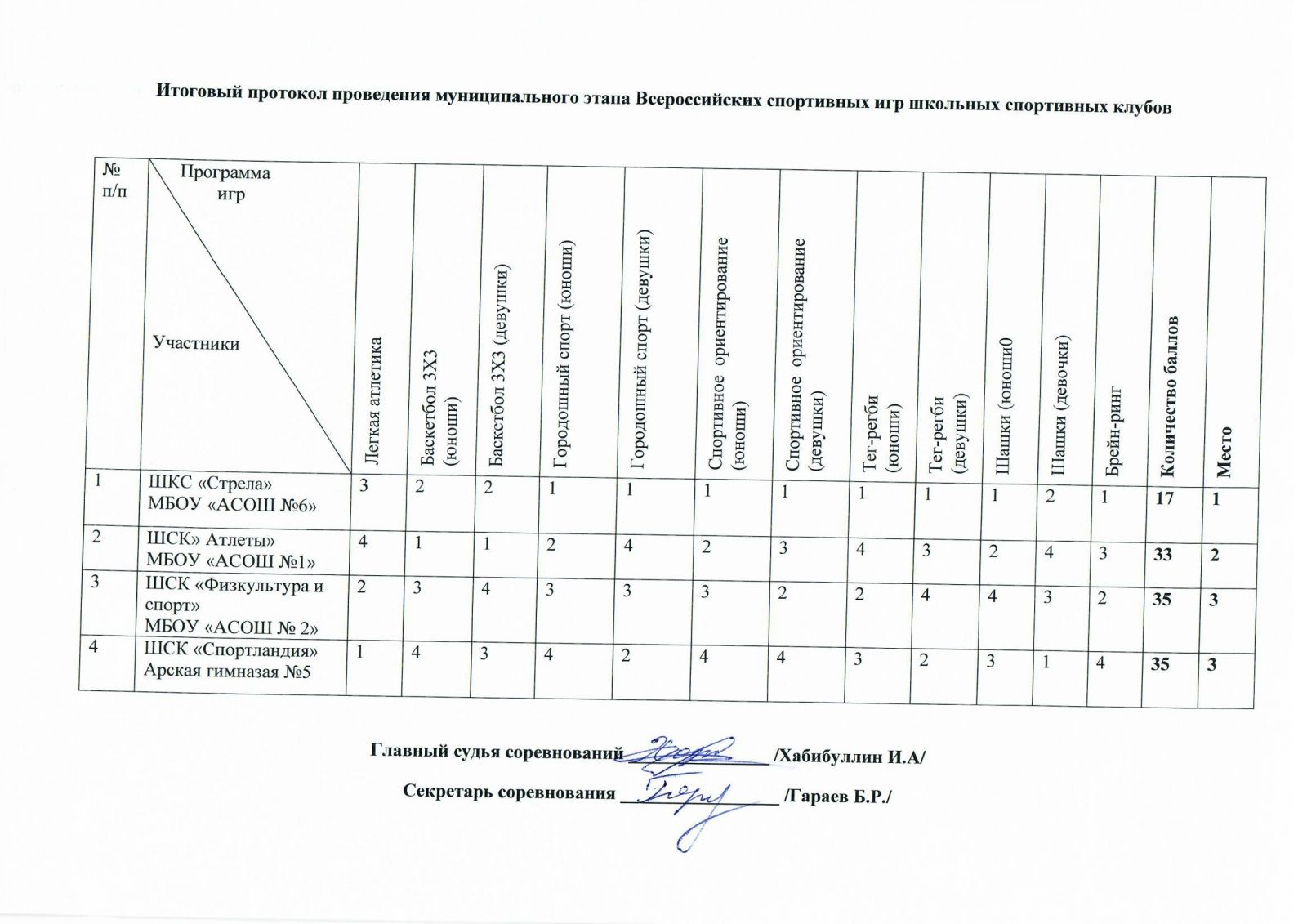 - Всероссийские спортивные игры ШСК (2023-2024уч.год):