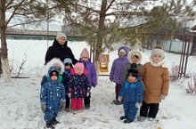 Буген без балалар белән кошларга ярдәм итеп жимлекләр элдек. Балалар кошларны кузәттеләр, аларны сакларга, кайгыртырга hәм кулдан килгэнчә ярдәм итәргә кирәклеген төшенделәр. -