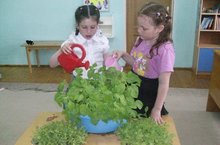 "Безнең күзәтүләр" 23.05.2016 Мәктәпкәчә яшьтәге балаларга аеруча кызыксынучанлык хас.Табигатьне күзәтү, аны өйрәнү, сакларга омтылу- балаларның рухи дөньясын баета, уйларга өйрәтә. Шуның өчен балалар бакчасында тирә-якны өйрәнү, табигатькә сакчыл караш, экологик тәрбия зур урын алып тора. Балаларыбыз тәрбияче апалары белән кышын тәрәзә төпләрендә суган үстерәләр , аның үсешен күзәтү балалар өчен бик кызык. Иртә язда , клумбаларга утырту өчен , орлыклар чәчеп чәчәк үсентеләре үстерәбез .