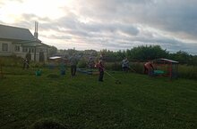 Балалар бакчасы янын,мәйданчыкның үскән яшел үләннәрен чаптык.
