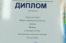 "Голосок " бәйгесендә катнашып,безнең балалар бакчасыннан Хадиуллина Энҗе III нче урынны яулады.