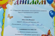 Арчанын 90 еллыгына багышланган рәсем конкурсында катнашып,безнең балалар бачасында тәрбияләнүче Абдуллин Ильдан 2 урынны яулады.