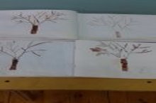 Цель: Учить детей изображать картину природы,передавая строение разнообразных деревьев.Развивать эстетическое восприятие,вызывать желание любоваться красотой зимнего пейзажа.Учить рисовать угольным карандашом,гуашью-белилам (изображая иней,снег на ветвях).Развивать эстетическое восптиятие.