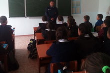 Куркынычсызлык айлыгы кысаларында чаралар үткәрелү дәвам итә. Бүген безнең укучылар белән очрашуга мәктәп инспекторы Нигматуллин Н.К. килде. Ул "Экстремизмга - юк!"дигән темага эшлекле әңгәмә үткәрде.Үзенең чыгышында экстремизм, террорчылык, ксенофобия кебек күренешләрнең куркыныч ягын тагын бер кат искәртеп үтте һәм әлеге проблема буенча фикер алышырга тәкъдим итте. Әңгәмә барышында укучылар яшьләр арасында формаль булмаган һәм милләтчелек хәрәкәтләре ни сәбәпле килеп чыга, дигән сорауга җавап табарга тырыштылар.