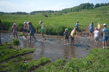 Фәрит Фәтхиевич үзе өйрәткәннәрен балалардан ярыш формасында үткәртеп алды.Укучылар сазлыктан күчләр аша һәм басма ясап чыктылар, төеннәрне дөрес итеп бәйләделәр.Ярыш бик күңелле үтте.