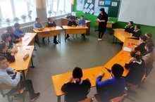 Бүген табигать фәннәре атналыгының 5 нче көнендә 8 класста биологиядән "Кешенең сулыш системасы" темасын гомумиләштерү дәресе булды. Биология укытучысы Хадиева Р.Р. укучылар белән берлектә теоретик белемнәрне барлап , практик юнәлештә бик күп тәҗрибәләр башкарылды., ясалма сулыш алу механизмы, беренче ярдәм күрсәтү практик күнекмәләре бирелде.