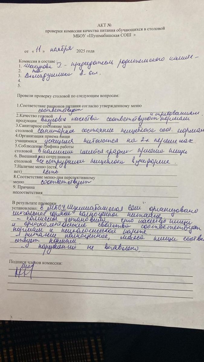 АКТ проверки комиссии питания обучающихся в столовой от 11.03.2025г.jpg
