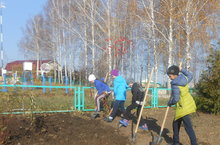 Г.Камал исемендәге Сикертән төп гомуми белем мәктәбендә укучылар мәктәп бакчасында көзге эшләрне башкаралар. Түтәлләрне казыйлар, агач яфракларын түгәләр. Мәктәп янында чисталык хөкем сөрә.