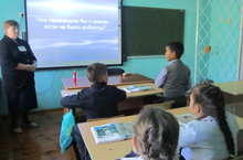 6 сентября в рамках месячника безопасности детей классный руководитель Ф.Х. Бадриева провела с учащимися 3 класса беседу на тему «Оказание первой помощи в ЧС». Она рассказала о первой помощи при дорожно-транспортном происшествии, при пожаре, в случаях, если человек тонет. Третьеклассники узнали каким образом остановить сильное кровотечение, можно ли давать пить пострадавшему с ранениями живота, как сделать искусственное дыхание. Ребятам продемонстрировали как правильно наложить жгут и с какой целью к нему прикрепляется записка, что делать при переломах и т.д. Учащиеся задали много вопросов Фариде Хидиятулловне, на которые она охотно ответила.