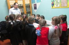 Бүген башлангыч сыйныф укучылары, сыйныф җитәкчеләре Хабирова Рая Павловна, Мәҗитова Рүзия Гафуровна җитәкчелегендә китапханәбездә экскурсиядә булдылар. Безне китапханәче абыебыз Хисматуллин Илнар Илгизарович каршы алды. Илнар абый чыннан да үз һөнәренең остасы. Китапханәдән бөркелгән нур һәм җылылык үзенә тартып тора. Яңа китаплар белән таныштырды. “Мактанчык чыпчык”, “Бал корты, һәм шөпшә” һ.б. Ул безгә китапның безне һәрчак яхшыга гына өйрәтүен һәм тормышыбызны нурлы итүен, белемле, әдәпле, акыллы киңәш бирүен, хезмәт сөючән, авыр вакытта югалып калмаска өйрәтүен сөйләде.