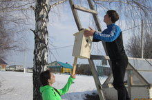 Мәктәбебездә “70 еллыкка – 70 сыерчык оясы” конкурсы бара, ә бүген исә укучыларыбыз үзләре ясаган ояларны мәктәп территориясендә булган агачларга элделәр.