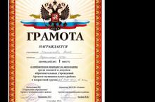 Ученик 5 класса Залялеев Инсаф награжден Грамотой за 2 место на этапе "Страховой агент" в конкурсе "Безопасное колесо-2012" среди отрядов ЮИД школ Арского района Республики Татарстан.