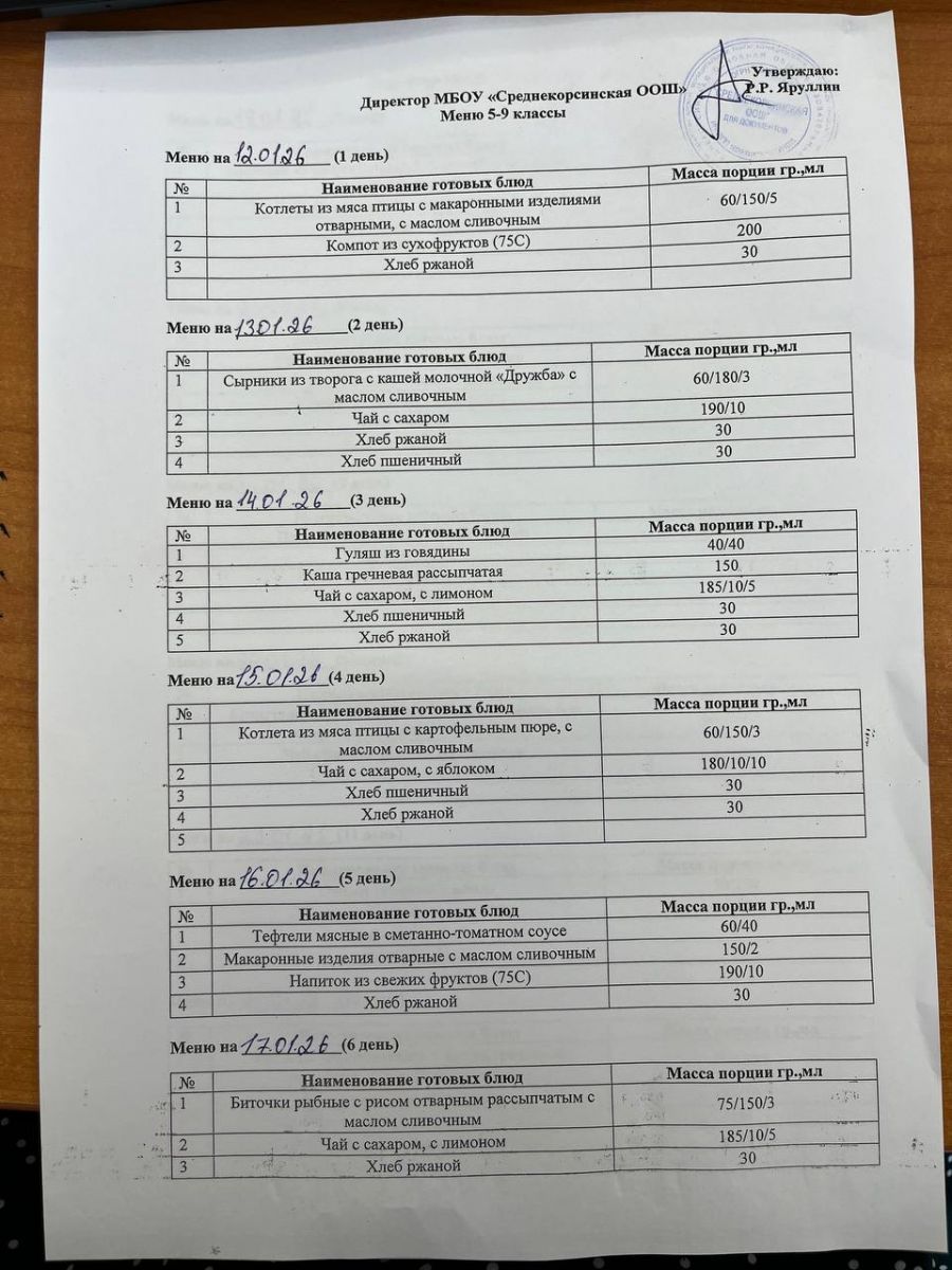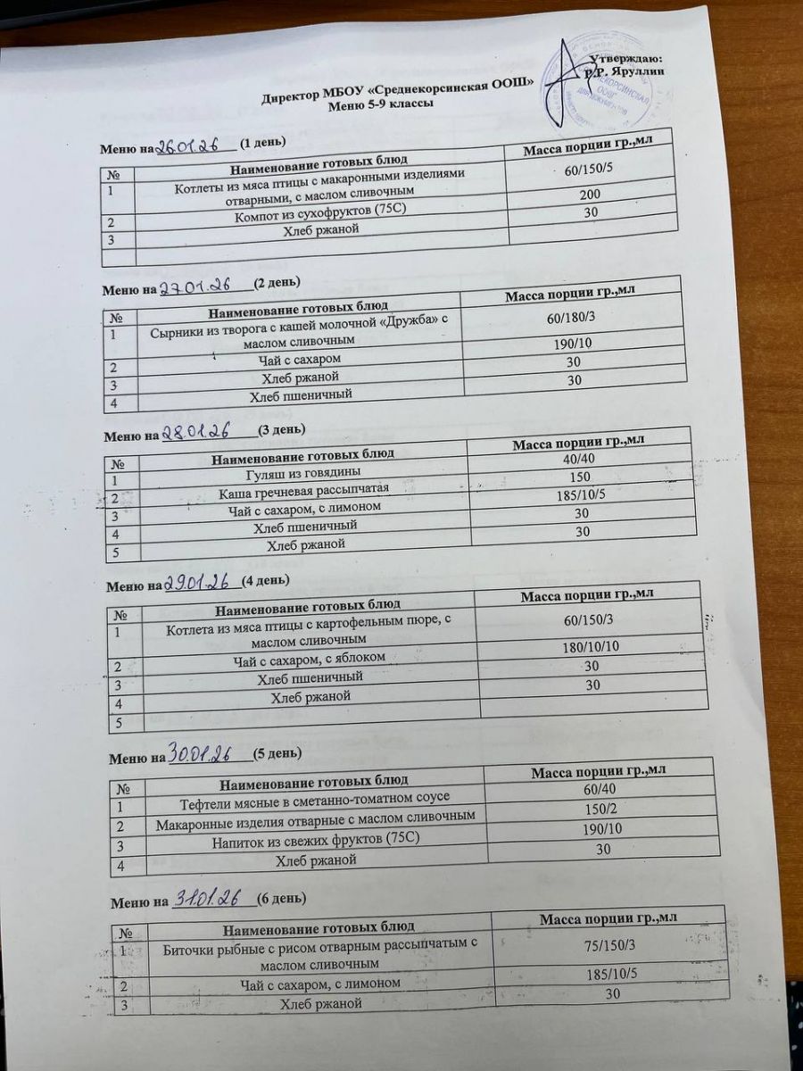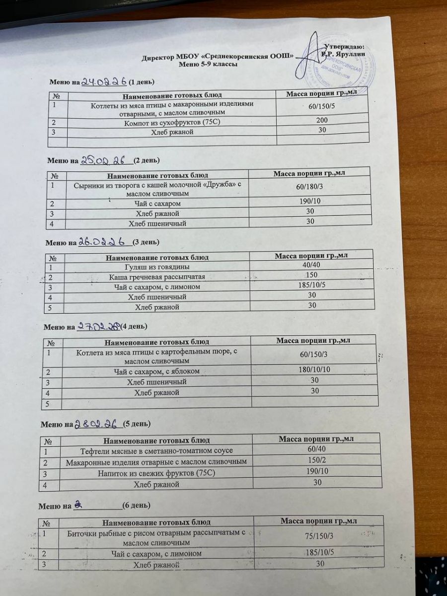 Утвержденное меню для учащихся начальных классов 01.03.2026 Утвержденное меню для учащихся 5-9 классов 01.03.2026