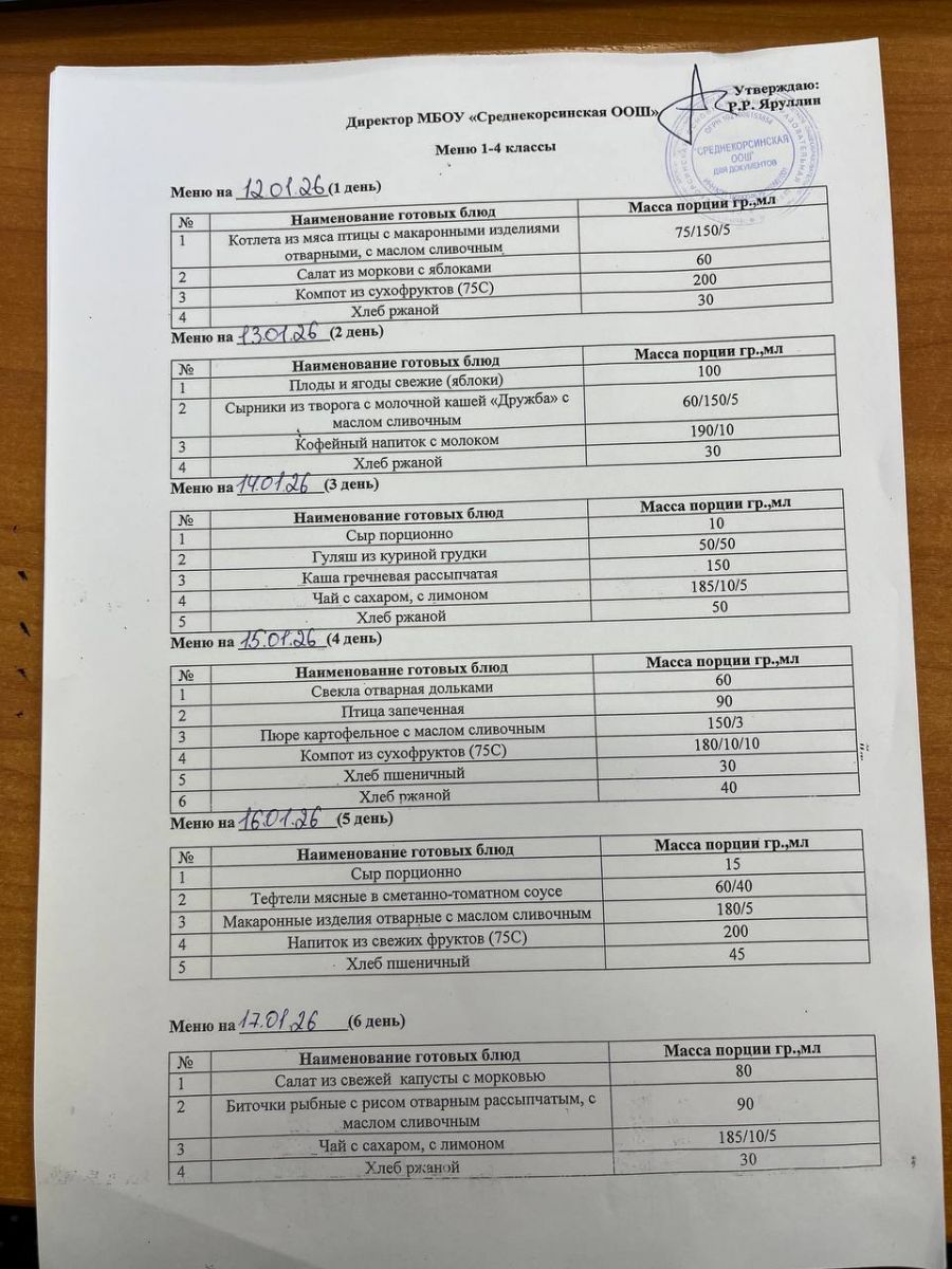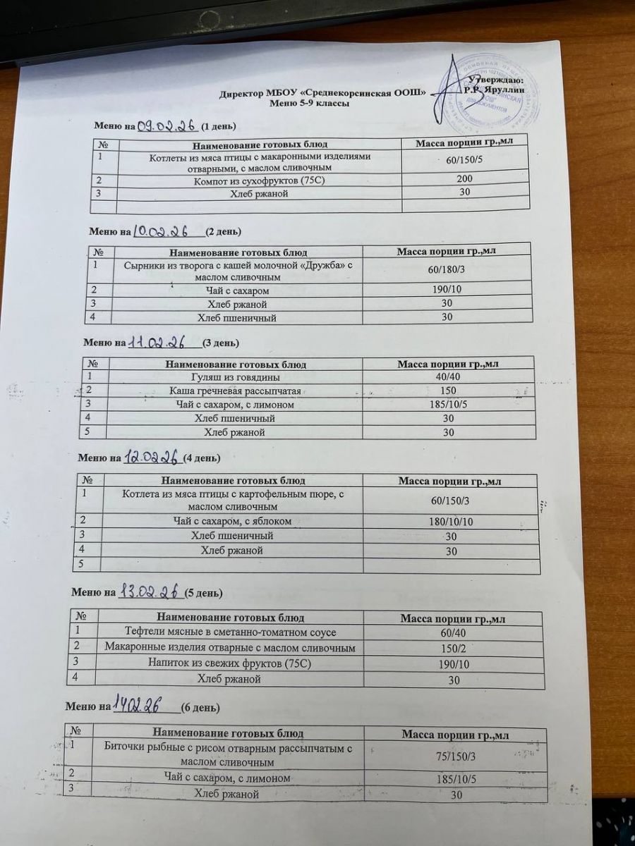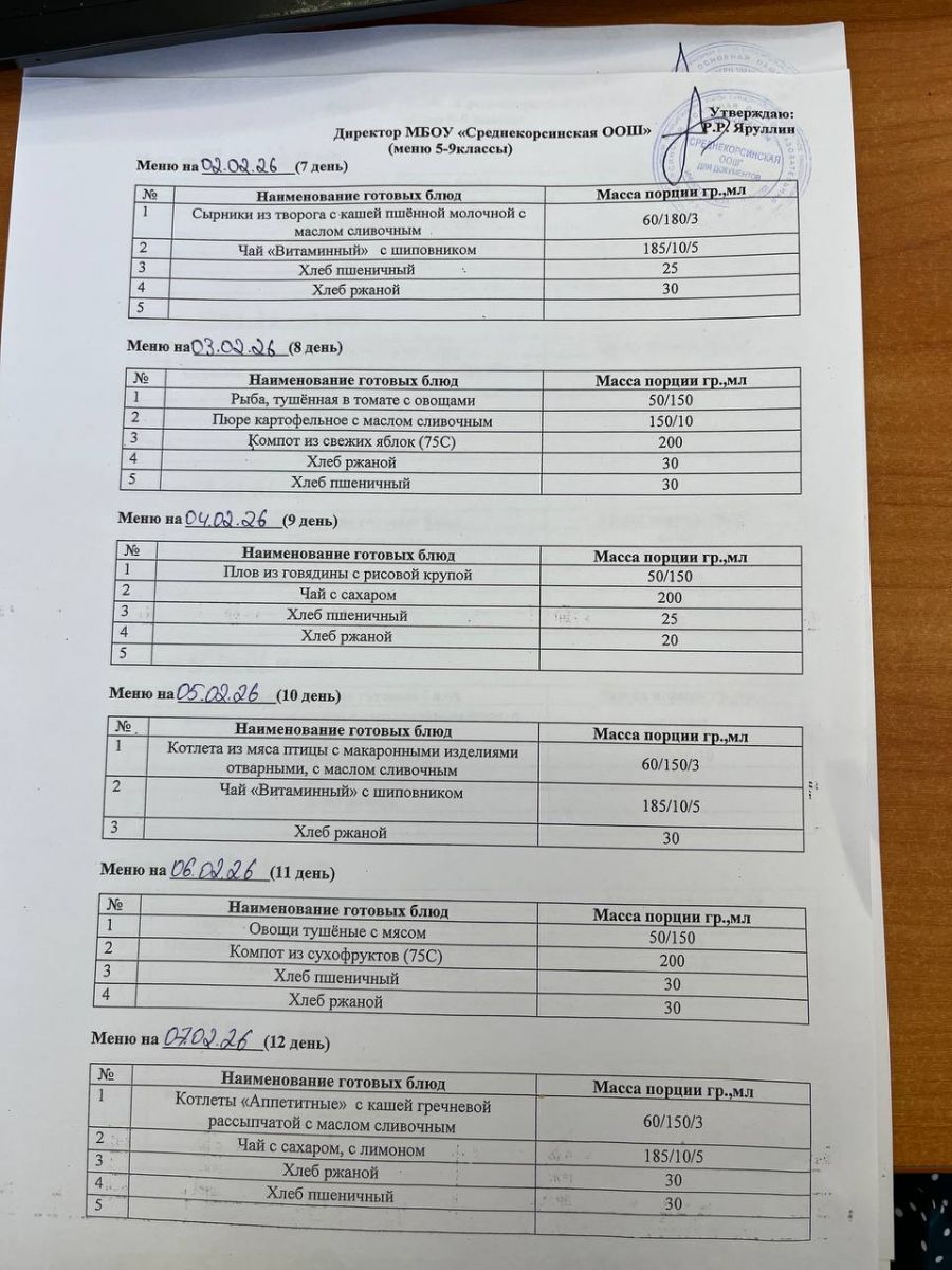 Утвержденное меню для учащихся начальных классов 01.03.2026 Утвержденное меню для учащихся 5-9 классов 01.03.2026