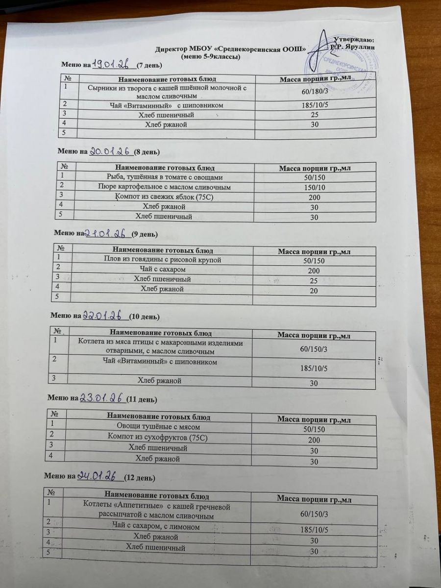 Утвержденное меню для учащихся начальных классов 01.09.25 Утвержденное меню для учащихся 5-9 классов 01.09.25
