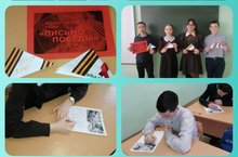 В преддверии 77-й годовщины Великой Отечественной войны прошла акция «Письмо Победы». Обучающиеся 7 класса присоединились к этой Всероссийской акции, потому что необходимо сохранить светлую память о героях Великой Отечественной войны. С каждым годом фронтовиков остается все меньше и меньше. И задача акции – вспомнить о подвиге героев, отстоявших мирное небо для последующих поколений.