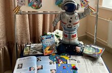 В преддверии праздника, активисты «Движения Первых» , «Волонтеры Победы» оформили информационный стенд в космической тематике.