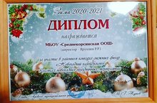 МБОУ "Среднекорсинская ООШ" награждается дипломом 3 степени в районном конкурсе на лучшее новогоднее оформление подведомственной территории "Снежные узоры" среди организаций, предприятий и учреждений.