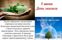 Всемирный день окружающей среды (День эколога) 05.06.2020