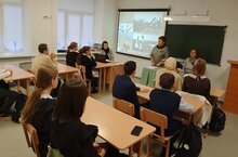 В школах продолжается цикл лекций на тему "С чего начинается Родина?" Сегодня председатель Совета ветеранов Арского района Хамидуллина Р. Ш. провела лекцию о вкладе района в Великую Победу, Героях района для учащихся 8-9 классов.