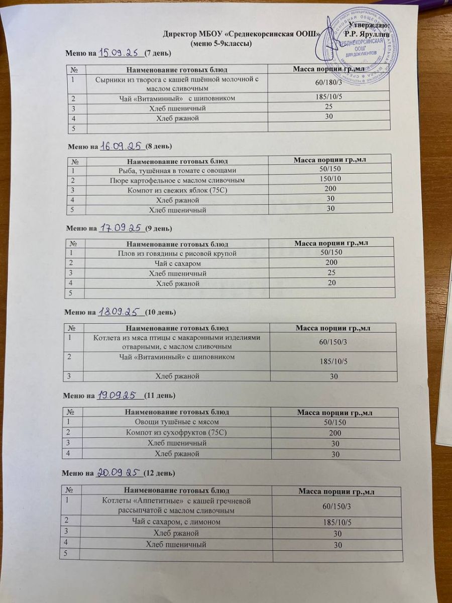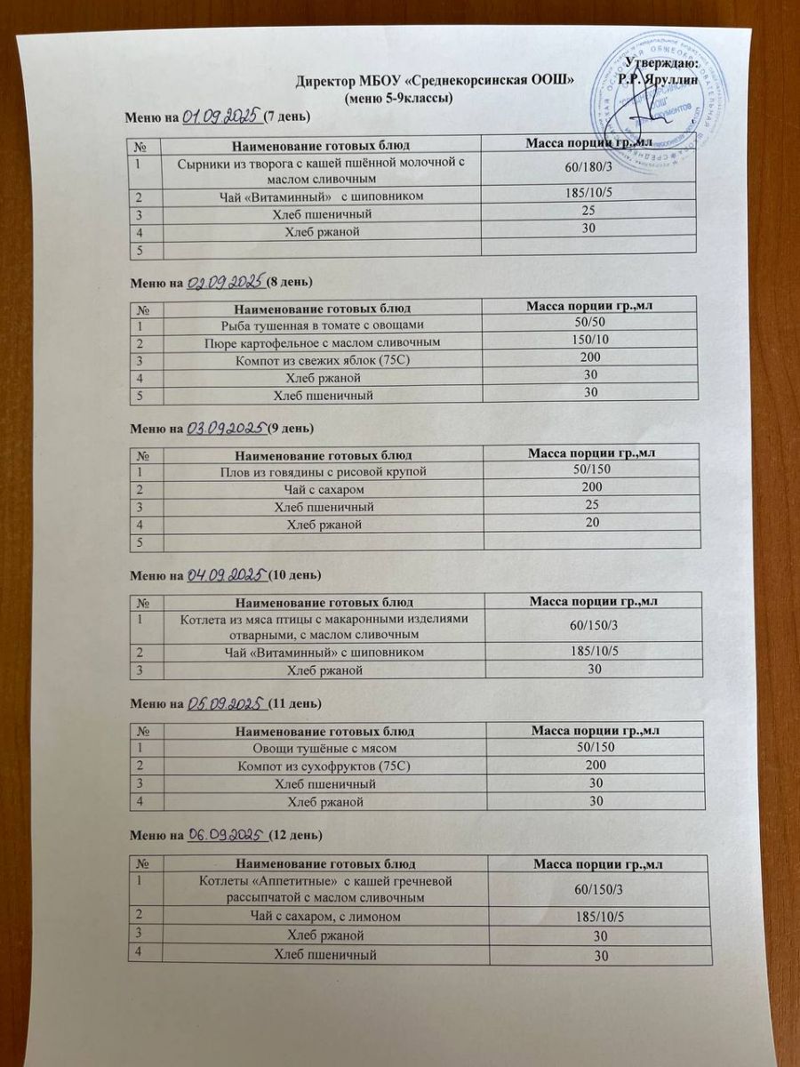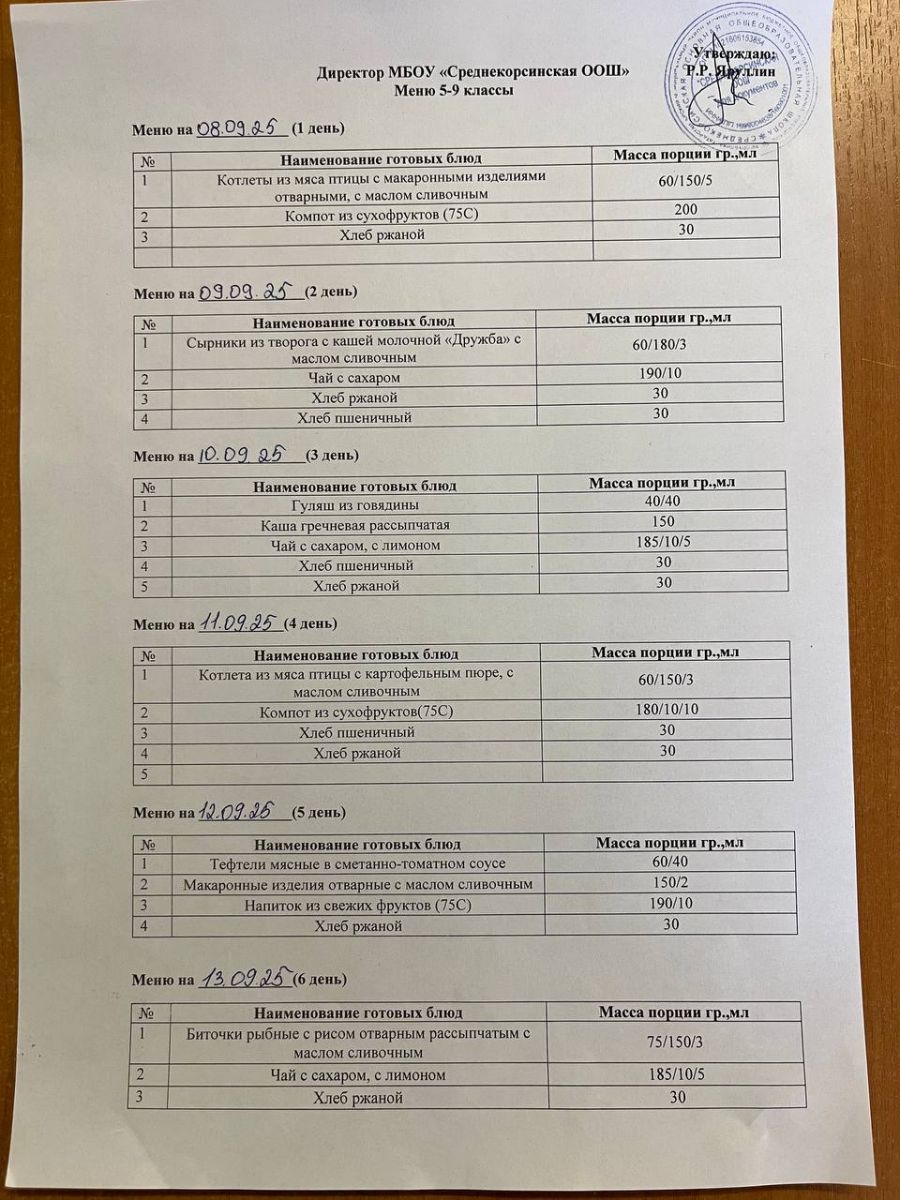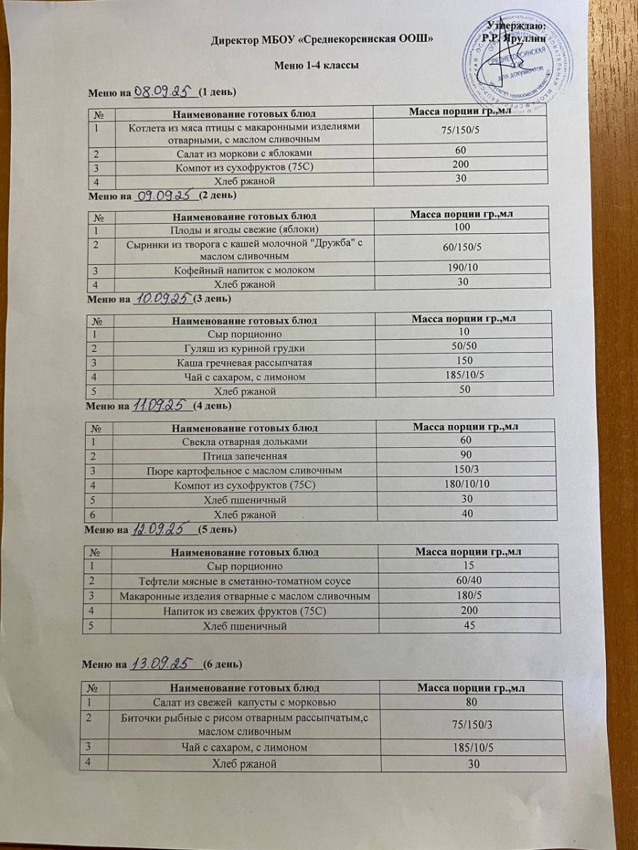 Утвержденное меню для учащихся начальных классов 01.09.25 Утвержденное меню для учащихся 5-9 классов 01.09.25