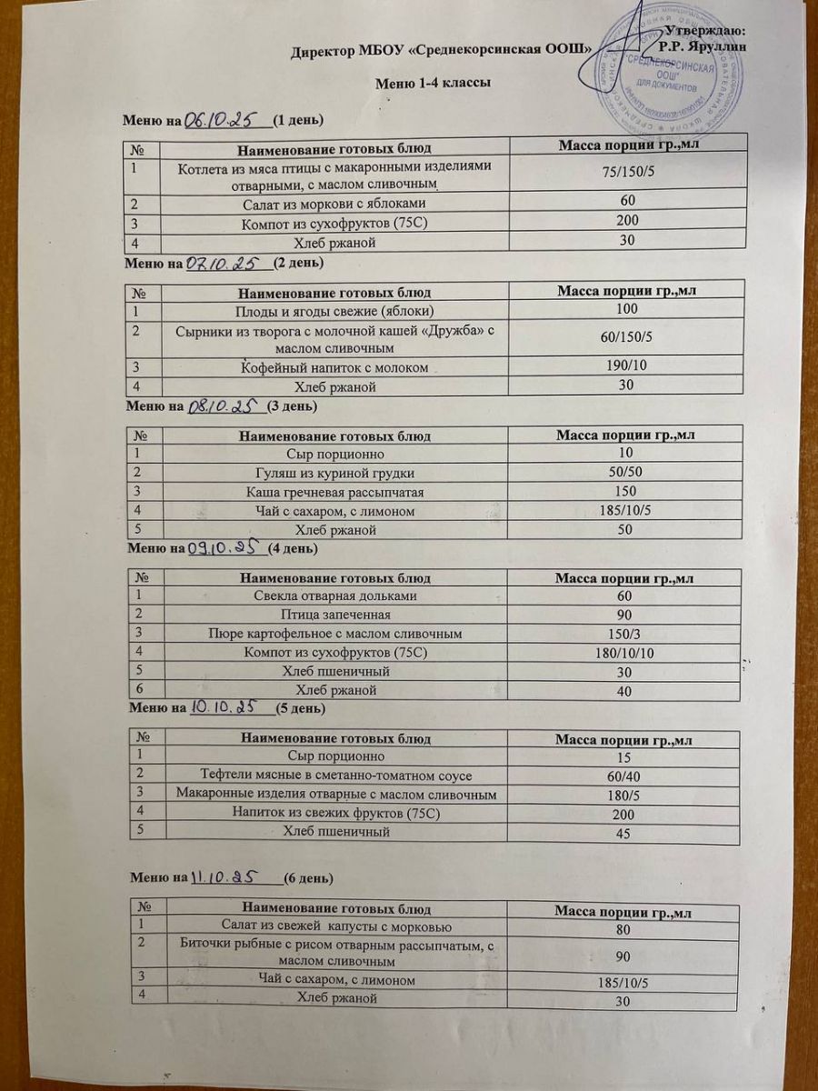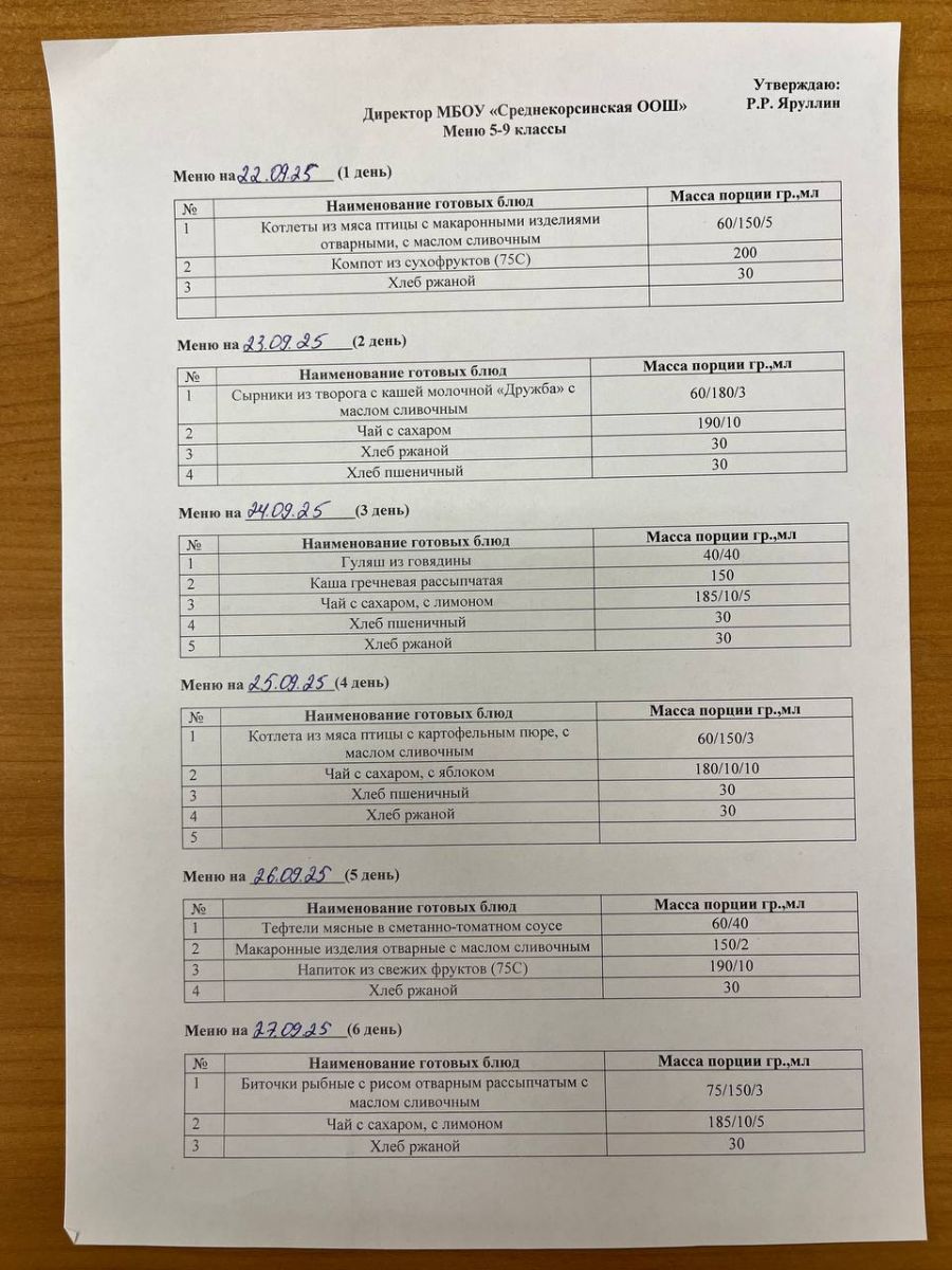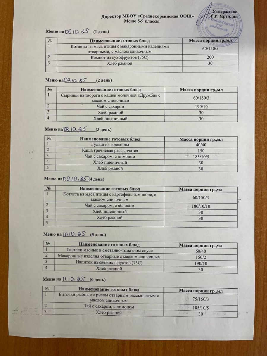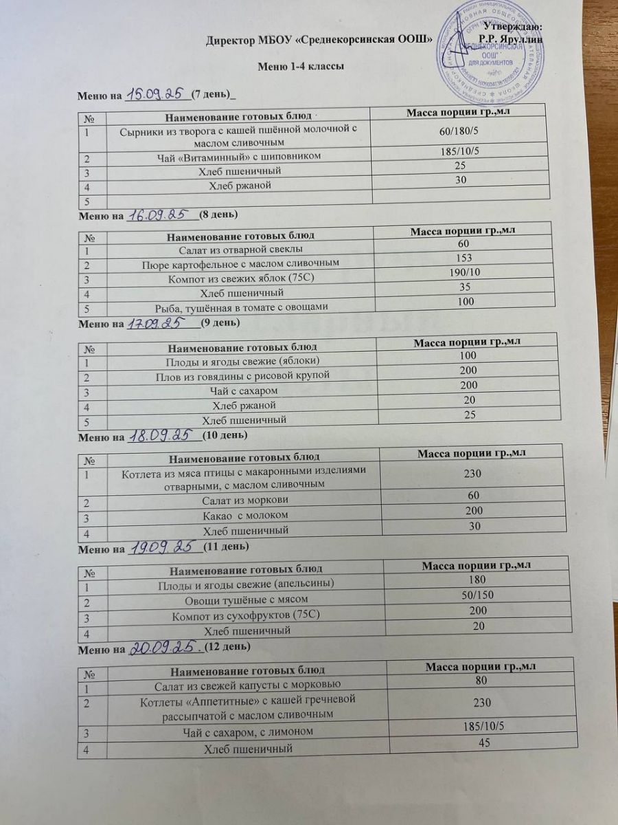 Утвержденное меню для учащихся начальных классов 01.09.25 Утвержденное меню для учащихся 5-9 классов 01.09.25