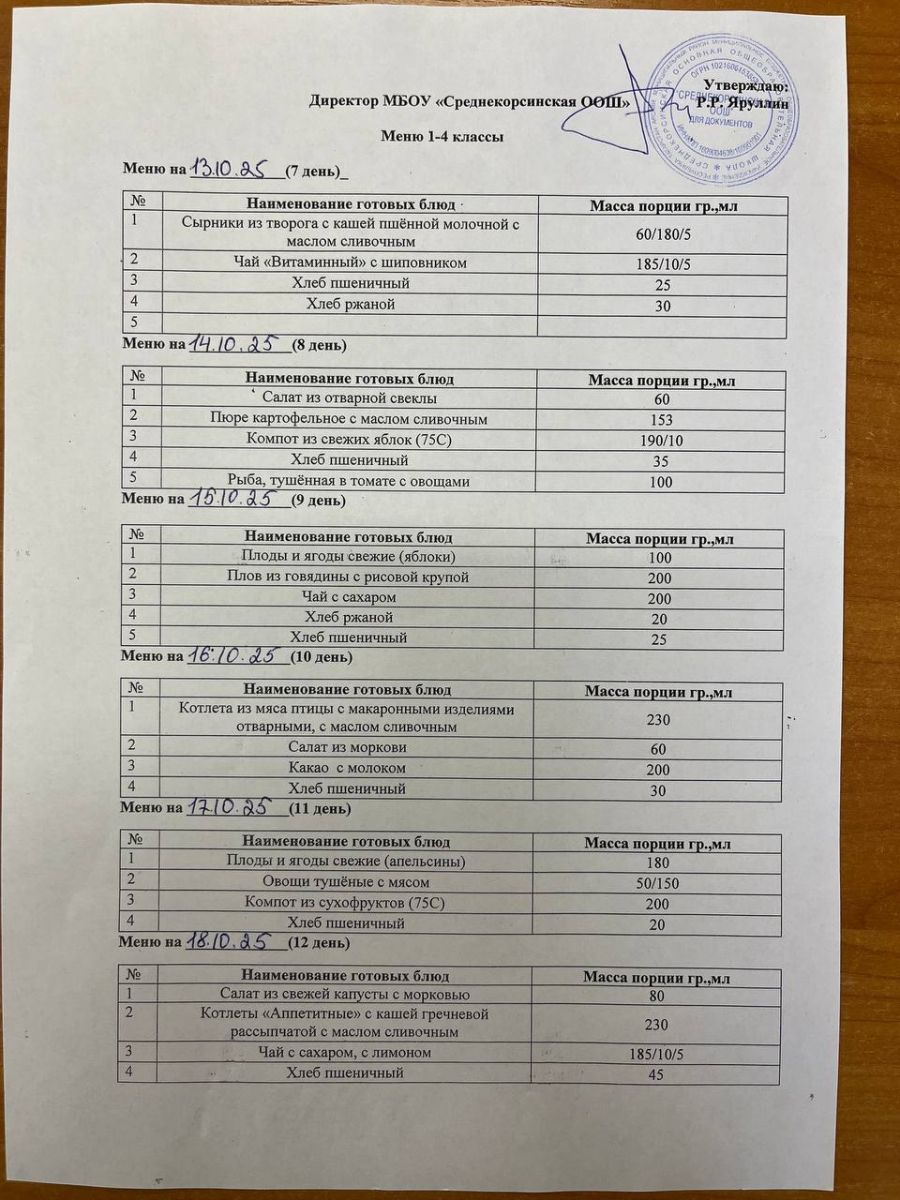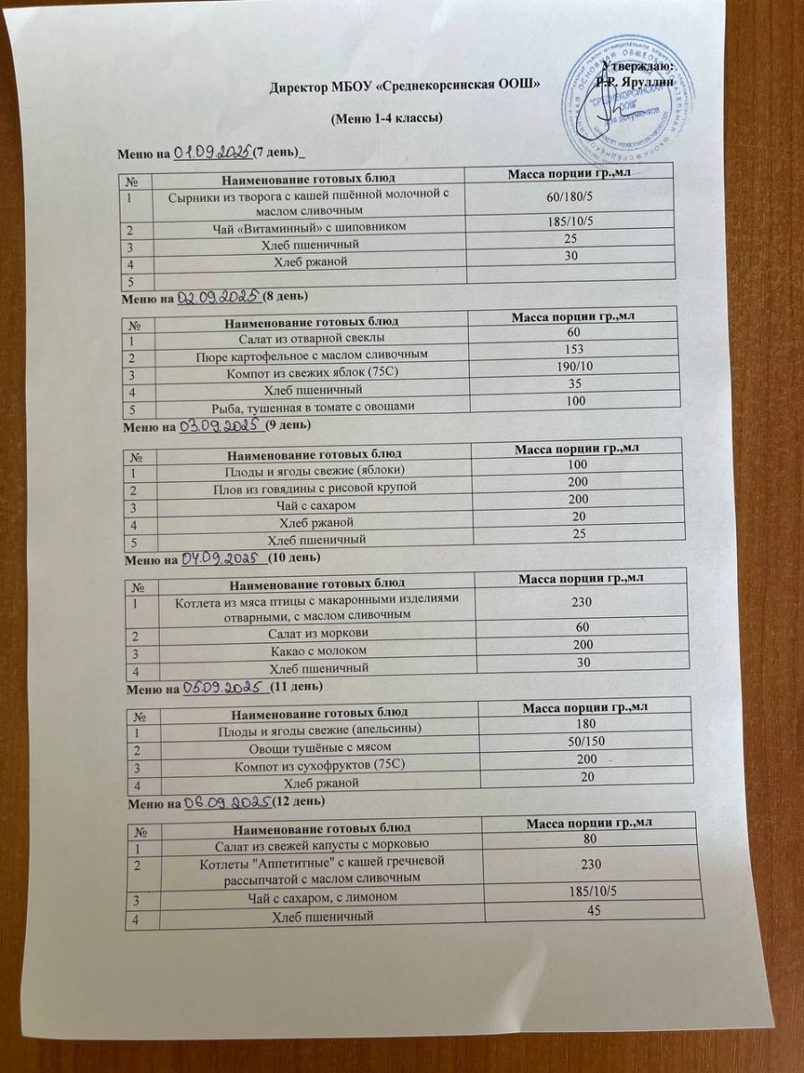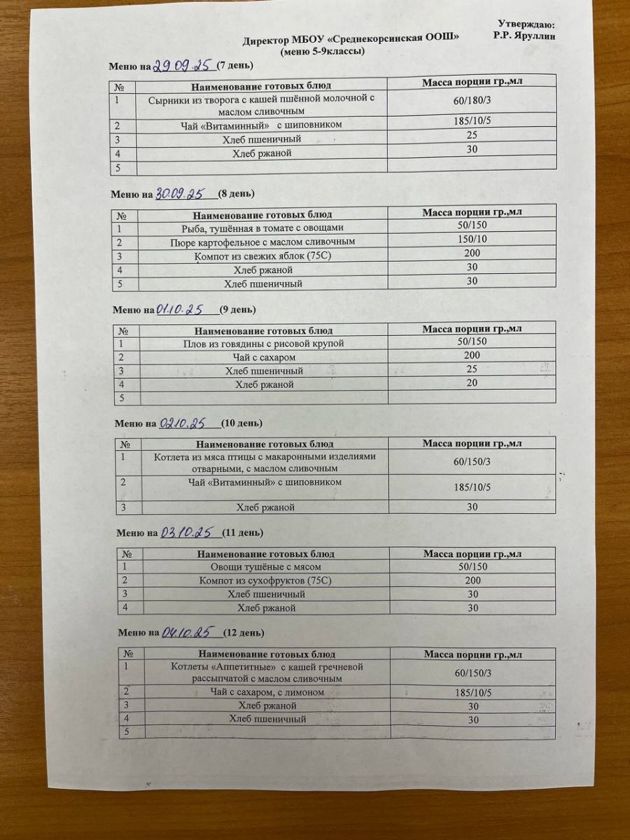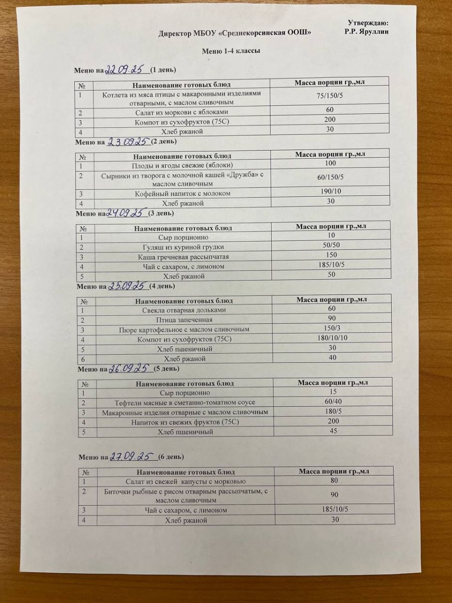 Утвержденное меню для учащихся начальных классов 01.09.25 Утвержденное меню для учащихся 5-9 классов 01.09.25