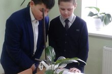 Биология дәресендә 6 нчы сыйныф укучылары, тәҗрибәләр куялар, үсемлектә барган күренешләрне күзәтәләр. Теорияне практика белән ныгыталар.