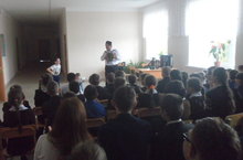Бүген укучылар җырчы, педагог, халык уен коралларында уйнаучы Шиһапов Солтан Фидәис улы белән очраштылар. Җырчы укучыларга бик күп төрле уен кораллары: курай, баян, кыңгыраулы гармун, тальян, сорнай, кубыз һ.б турында мәгълүмат бирде, укучыларга туган телгә багышланган шигырьләрне, татар халык көйләрен, җырларын тәкъдим итте. Очрашу ахырында бергә "Туган тел" җырын җырладылар.