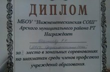 Бүген Түбән Мәтәскә урта мәктәбендә профсоюз хезмәткәрләре арасында зонаара шашка-шахмат ярышлары уздырылды. Әлеге ярышта мәктәбебездән Шәфигуллин Н.Ф һәм Шаһниева Р.Р. катнашты һәм уңышлы чыгыш ясады. Хатын-кызлар арасында шахмат буенча 2 нче урынны Шаһниева Р.Р. яулады. Афәрин!