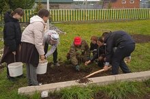 В честь односельчан, которые отдали свои жизни ради Победы, на пришкольном участке были высажены деревья и кустарники. -