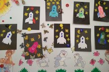 12 апрель Космонавтика көне. Шул көнгә багышлап балаларбыз космос, космонавт төшенчәләре буенча белемнәрен арттырдылар, космонавтлар белән таныштылар, аппликация ярдәмендә ракета рәсемен ясадылар.